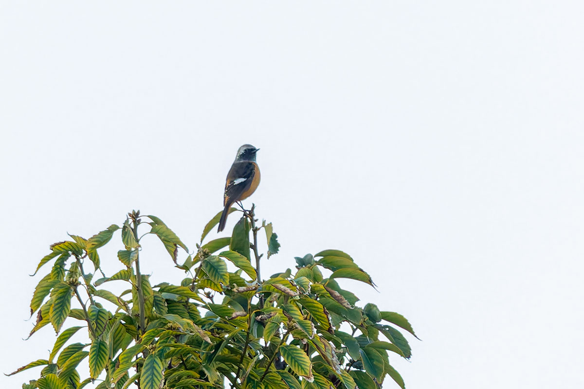 30メーター以上離れた木の上にジョウビタキがいましたが、すぐに小池小学校の方に飛んで行ってしまいました。